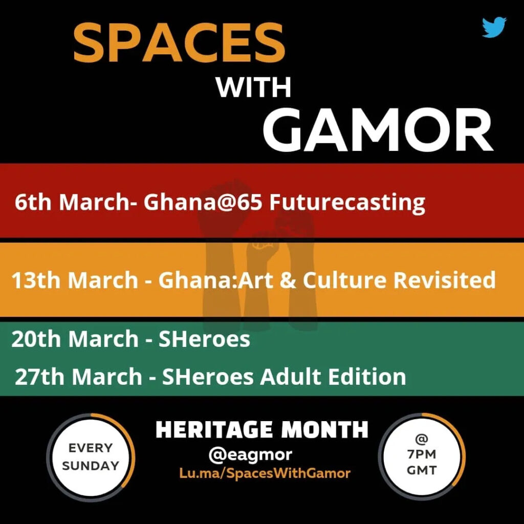 March, particularly the celebratory 6th of March (Ghana’s Independence Day) ushers a month of reflection for nationalistic, pan-African & Afropolitan pride. Going through the annual motions, my Eliu Gift Hub team and I decided to open up our weekly Twitter conversations on Spaces, to spotlight: