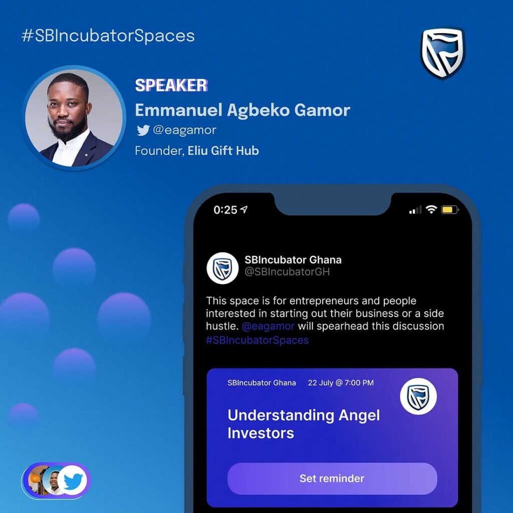 This Friday, 8 pm GMT Stanbic Incubator Ghana is hosting a Twitter Spaces conversation on Angel Investing, and yours truly with colleagues and friends, will be sharing nuggets of experience (personal and professional, ecosystem-friendly) and tips in navigating what seems to be a skewed pipeline to capital (via angel investing) in Africa and specifically in Ghana.