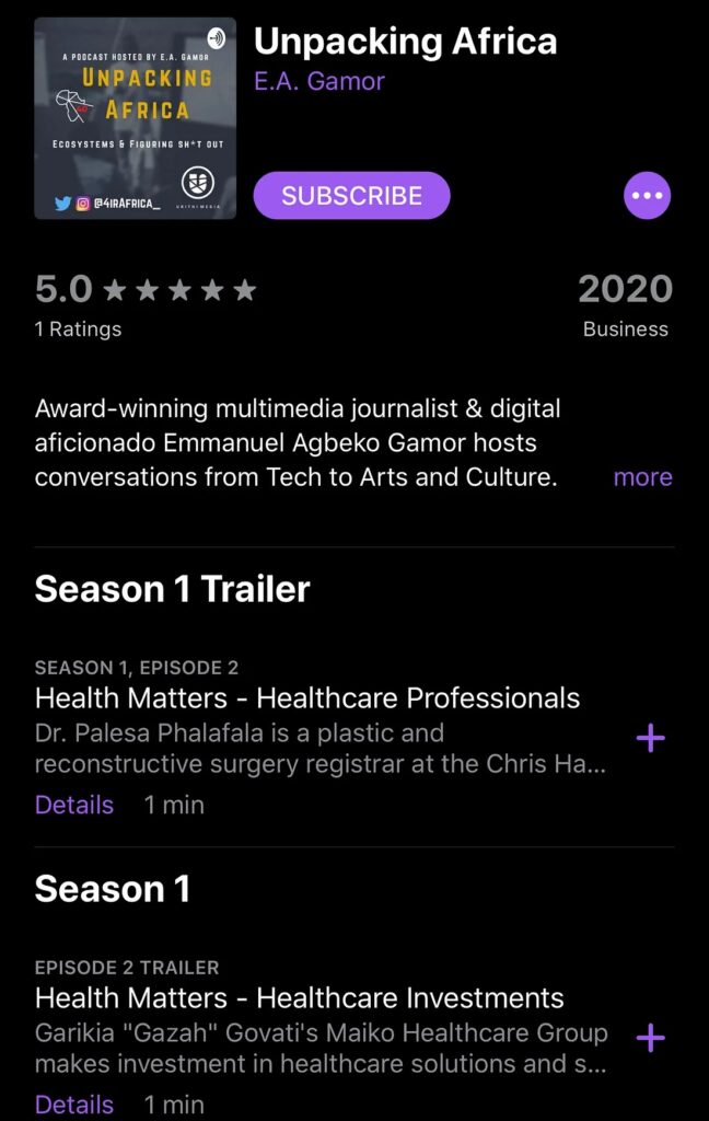 2. If you haven’t already, kindly subscribe to the🎙 “Unpacking Africa” show, now on Apple iTunes Podcasts (please leave a review and positive rating to improve discoverability globally); connect us with fellow podcasters by having them fill this form here; and guests whose perspective help with the mission for empathetic listening as we unpack Africa’s ecosystem eagamor@4irAfrica.co.